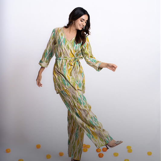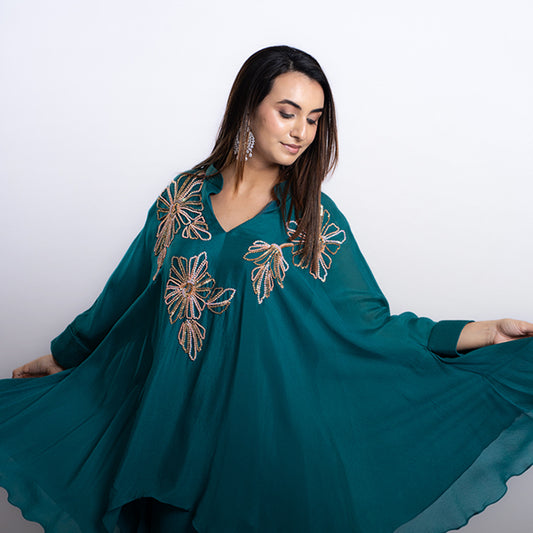 EMBELLISHED CAPE SLEEVES SET WITH PARELLEL PANTS